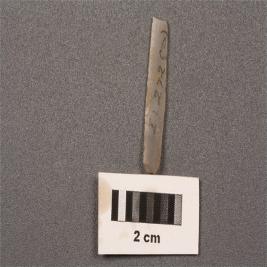 | Description / विवरण | Chalcedony parallel sided blade with a double ridge, trapezoidal section, sharp edges. |