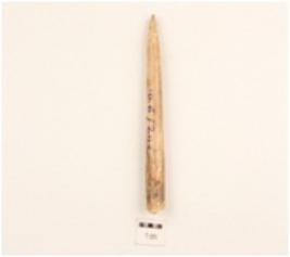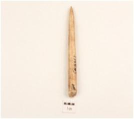 | Description / विवरण | Bone point, proximal end broken, sharp pointed end, smooth polished surface, round section. |