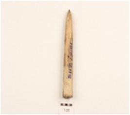 | Description / विवरण | Bone point, proximal end broken, sharp pointed end, smooth polished surface, round section. |