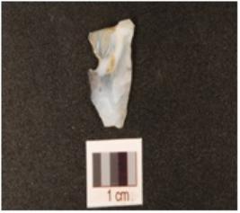 | Description / विवरण | Flake made of chalcedony with flake scars on the surface. |