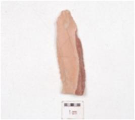 | Description / विवरण | Chert blade, prominent bulb and use-wear marks along the cutting edge. |