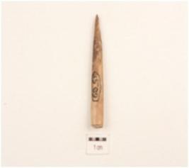 | Description / विवरण | Bone point, proximal end broken, sharp pointed end, polished surface, round section. |