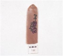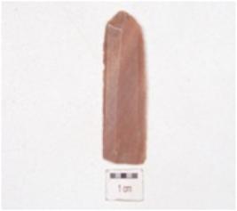 | Description / विवरण | Chert blade, prominent bulb, triangular cross-section and use-wear marks along the cutting edge. |