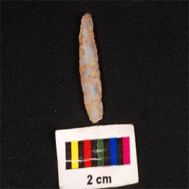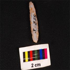 | Description / विवरण | Parallel sided blade made on chalcedony stone, mid ridge on dorsal surface, ventral surface is smooth and diffuse bulb at proximal end, use wear marks on edges. |