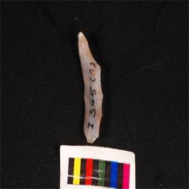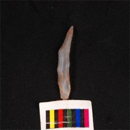 | Description / विवरण | Pen knife blade, made on chalcedony, wavy ridge on dorsal surface, and diffuse bulb at proximal end. |
