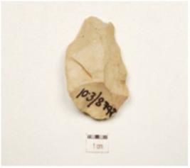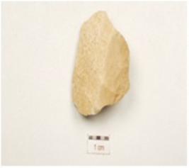 | Description / विवरण | A utilized flake made of chert, flake scars on surface cortex is intact and use wear marks along the cutting edge. |