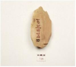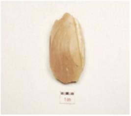| Description / विवरण | A flake made of chert, prominent bulb on ventral side, cortex is intact and flake scars on surface. |
