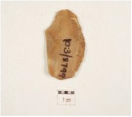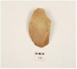 | Description / विवरण | A flake made of chert, flake scars on surface, prominent bulb on ventral side and prepared platform. |