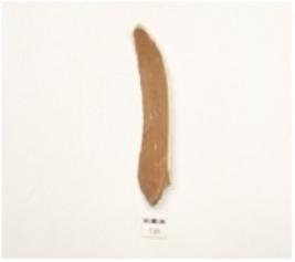 | Description / विवरण | A flake made on chert, flake scars on surface, prominent bulb on ventral side, cortex is intact. |
