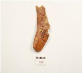 | Description / विवरण | A flake made of chert with flake scars on surface. |