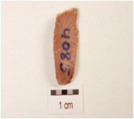 | Description / विवरण | A blade, made on chert with prepared platform, bulb on ventral side, prominent mid-ridge on dorsal side, use wear marks on cutting edge and triangular in section. |