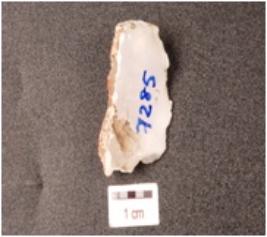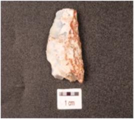 | Description / विवरण | A end struck chalcedony utilized flake made of chalcedony, prepared platform, prominent bulb on ventral side, cortex on dorsal cortex on dorsal and use-wear marks along the sharp edge. |