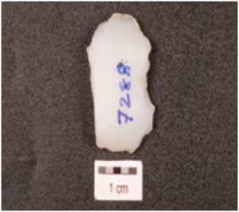 | Description / विवरण | A side scarper made of chalcedony flake, cortex on cutting edge with retouches and other end blunted. |