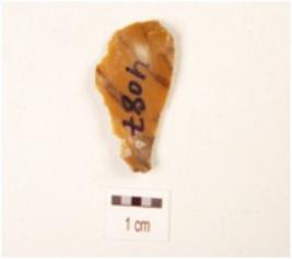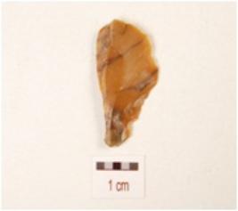 | Description / विवरण | A blade, made on chert with single ridge on dorsal side, prepared platform, bulb on ventral, use-wear marks on cutting edge and smooth ventral. |