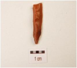 | Description / विवरण | A blade made on chert with prominent mid-ridge on dorsal side, use-wear marks on cutting edge and triangular in section. |