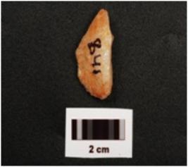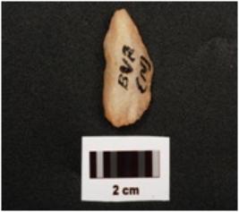 | Description / विवरण | A end scraper with diffused bulb on ventral side, one ridge and flake scars on dorsal side, prepared platform and smooth surface. |