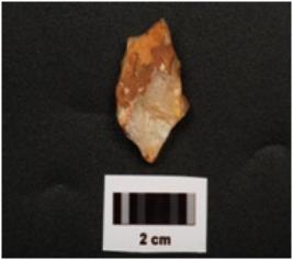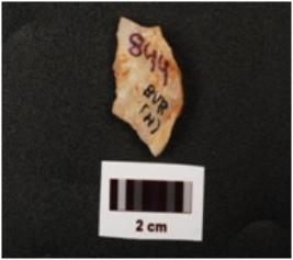 | Description / विवरण | A side scraper with prominent bulb on ventral side, flake scars on dorsal side, use wear marks on working edge and smooth surface. |