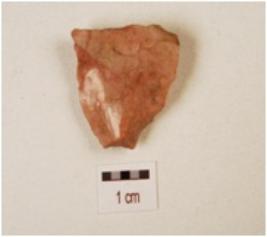 | Description / विवरण | A utilized flake made on chert with flake scars on dorsal side, prepared platform, bulb on ventral and use-wear marks on edge. |