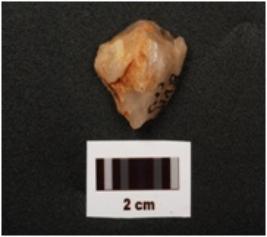 | Description / विवरण | A scraper with prominent bulb on ventral side, flake scars on dorsal side, prepared platform and use wear marks on working edge. |