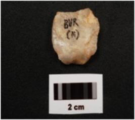 | Description / विवरण | A scraper with prominent bub on ventral side, prepared platform, flake scars on dorsal side and use wear mark on cutting edge. |