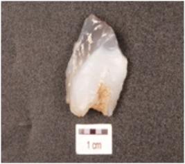 | Description / विवरण | A side scraper made of end struck chalcedony flake, diffused bulb on ventral retouches and use-wear marks along sharp edges. |