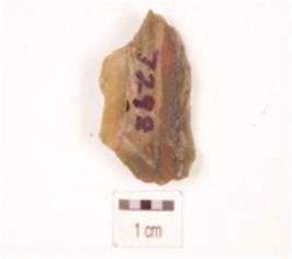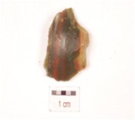 | Description / विवरण | A side scraper made of a side struck chert flake, prepared platform, diffused bulb on ventral side and convex cutting edge with retouches. |