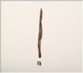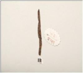 | Description / विवरण | An iron nail, one end pointed another top end broken, rough surface, polished and chemically treated. |