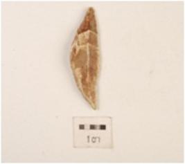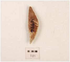 | Description / विवरण | A cresent made on chert with single mid-ridge on dorsal side, blunt working edge on left side and right side cutting edge, triangular in section. |