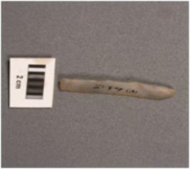 | Description / विवरण | Parallel sided microlithic blade with use-wear marks on cutting edges, blade scars on dorsal surface, prominent bulb on proximal end trapezoidal in section. |