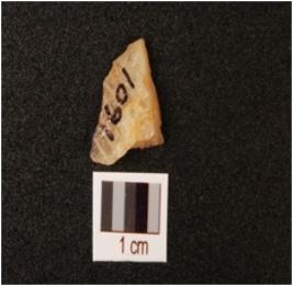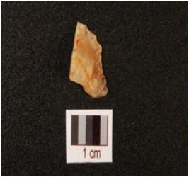| Description / विवरण | A quartz flake with two flake scars on the surface. |