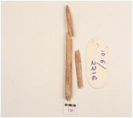 | Description / विवरण | Three fragment of bone point, partly broken, sharp pointed end, smooth and polished surface. |