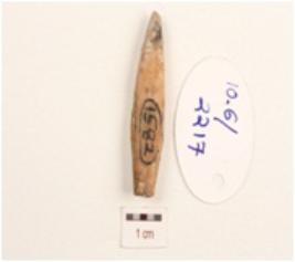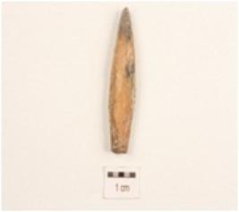 | Description / विवरण | Bone point, proximal end broken, blunt pointed end, rectangular cross section, polished surface. |