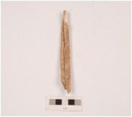 | Description / विवरण | A broken piece of bone arrow head, broken from both ends, cracks on the surface, smooth surface and polished. |