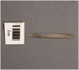 | Description / विवरण | Chalcedony parallel sided blade with a double ridge, sharp edges, trapezoidal section. |