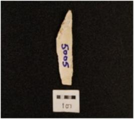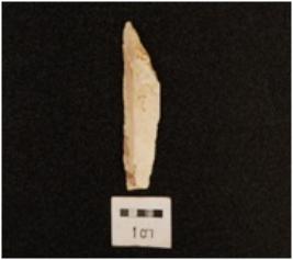 | Description / विवरण | A blade made on chert with prominent mid-ridge on dorsal side, prepared platform, use-wear marks on cutting edge and triangular in section. |