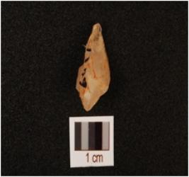 | Description / विवरण | A quartz flake with three flake scars on the surface. |
