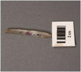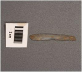 | Description / विवरण | Parallel sided microlithic blade with use-wear marks on cutting edges, a mid-ridges on dorsal surface, prominent bulb on proximal end broken distal end. |