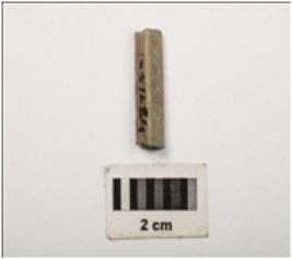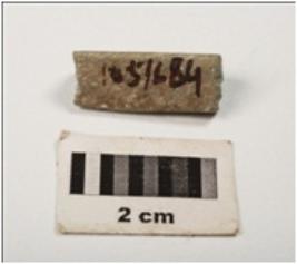 | Description / विवरण | Broken stone paint with polished surface, triangular cross section, broken at both ends. |