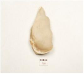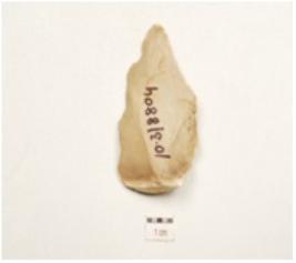 | Description / विवरण | A scraper made of chert, use wear marks along the working edge, cortex is intact, flake scars on dorsal side and prominent bulb on ventral. |
