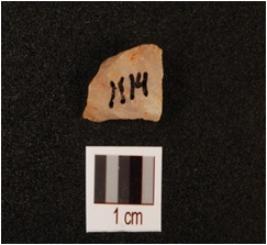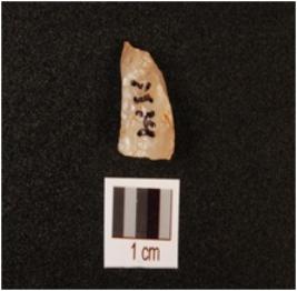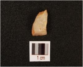 | Description / विवरण | A quartz flake with four flake scars on the surface. |