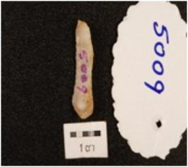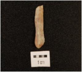 | Description / विवरण | A blade made on chert with prominent mid-ridge on dorsal side, prepared platform, bulb on ventral side, use-wear marks on cutting edge and triangular in section. |