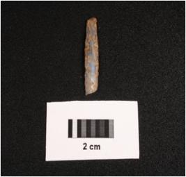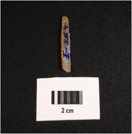 | Description / विवरण | Blunted blade with one cutting edge, on ventral surface, along the proximal end irralure is visible, core given slight heat treatment, on ventral surface ripple marks are prominent, use-wear marks along the cutting edge, broken along distal end. |