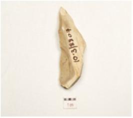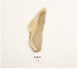 | Description / विवरण | A flake made of chert, flake scars on surface, cortex is intact, use wear marks along the working edge and prominent bulb on ventral. |