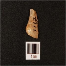 | Description / विवरण | A quartz flake with one flake scars on the surface. |