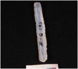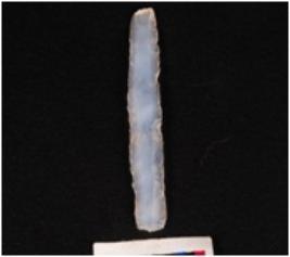 | Description / विवरण | A parallel sided microlithic blade with ridge on the dorsal side, diffused bulb on the ventral side, irregular retouch on cutting edges and prepared platform, trapezoidal in section. |