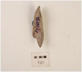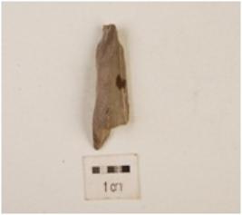 | Description / विवरण | A blade made on chert with prominent mid-ridge on dorsal side, diffused bulb on ventral side, use-wear marks on cutting edge and triangular in section. |