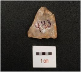 | Description / विवरण | A scraper with prominent bulb on ventral side, use wear marks on cutting edge, flake scars on dorsal side and smooth surface. |