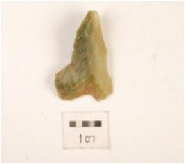 | Description / विवरण | A utilized flake, made on chert with end struck flake, prepared platform, bulb on ventral side and flake scars on dorsal side. |