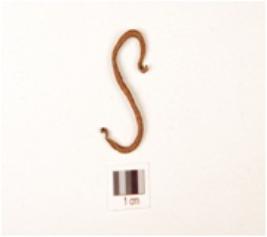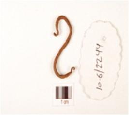 | Description / विवरण | Hook made on copper object, smooth surface, pointed on both end and folder in shape. |