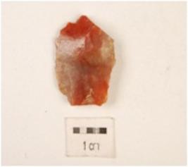 | Description / विवरण | A scraper made on chert with end struck flake, prepared platform, bulb on ventral side, and irregular retouching on working edge. |